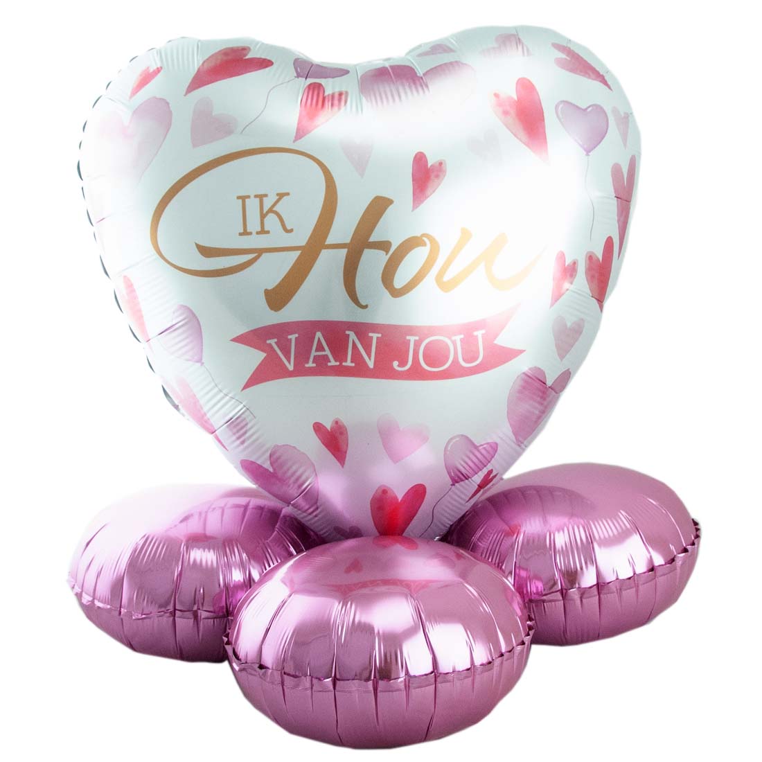 deBloemist.nl Ballon cadeau ik hou van jou roze van circa 43cm op een voetje. Lucht gevuld! Dus de ballon blijft wel weken t/m maanden mooi gevuld.