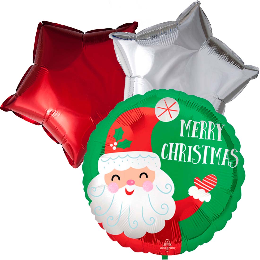 Ballonboeket Merry Christmas kerstman. Drie leuke verjaardag ballonnen voor de prijs van twee!