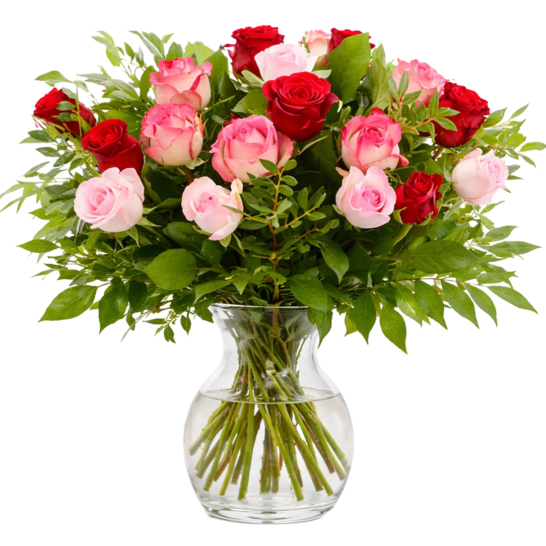 Boeket rode en roze rozen. Geschikt voor iedere gelegenheid, als bedankje, felicitatie, beterschap of sterkte.