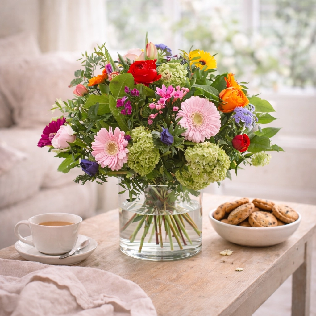 Zet bloemen niet op de tocht of in de zon, ze verdampen dan extra veel water en hebben moeite om dat bij te drinken. Let ook op dat je de bloemen niet naast rijpend fruit zet.