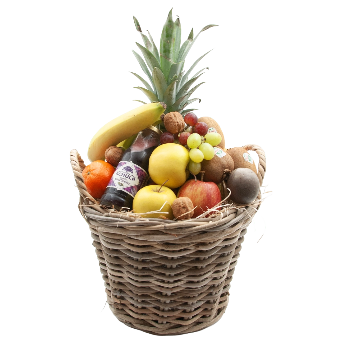 Fruitmand goed voor elkaar. Een warm gebaar vol vers seizoensfruit en een heerlijk sapmoment. Perfect om iemand kracht, aandacht of een glimlach te bezorgen. Altijd heerlijk vers fruit met zorg voor u uitgezocht!