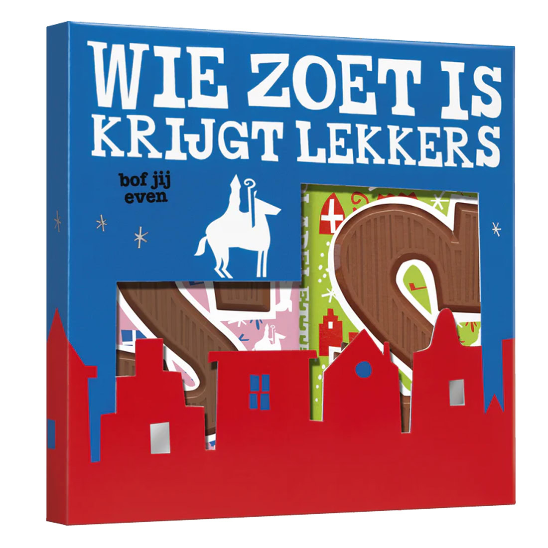 Verpakt in een vrolijke, kleurrijke geschenkdoos met de tekst “Wie zoet is, krijgt lekkers” — precies zoals het hoort tijdens pakjesavond.. Altijd een leuk cadeau!