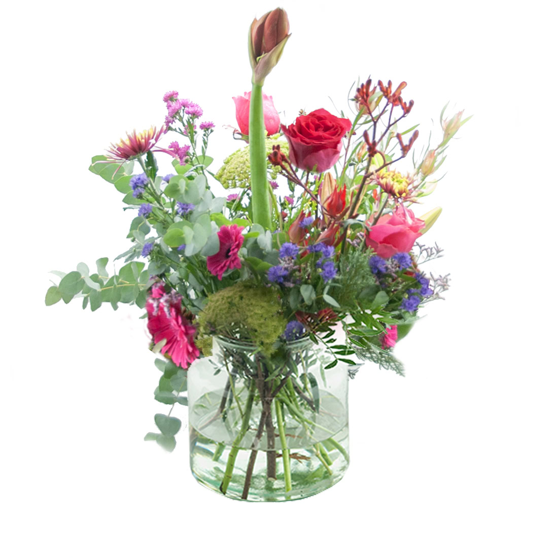 Onze boeketten worden handgebonden door een lokale vak bloemist. Ze kunnen, afhankelijk van het seizoen en beschikbaarheid van de bloemen, enigszins afwijken van de afbeelding. De vaas is niet inbegrepen, maar je kan hem los bijbestellen. (tenzij duidelijk vermeld inclusief vaas)